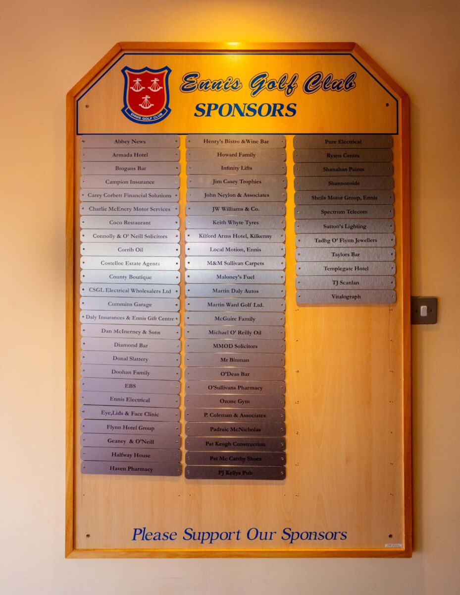 Ennis Golf Club has many generous sponsors and we are very grateful for the support they provide to our Club.